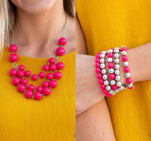 Miss Pop-YOU-larity - Pink necklace w/matching bracelet