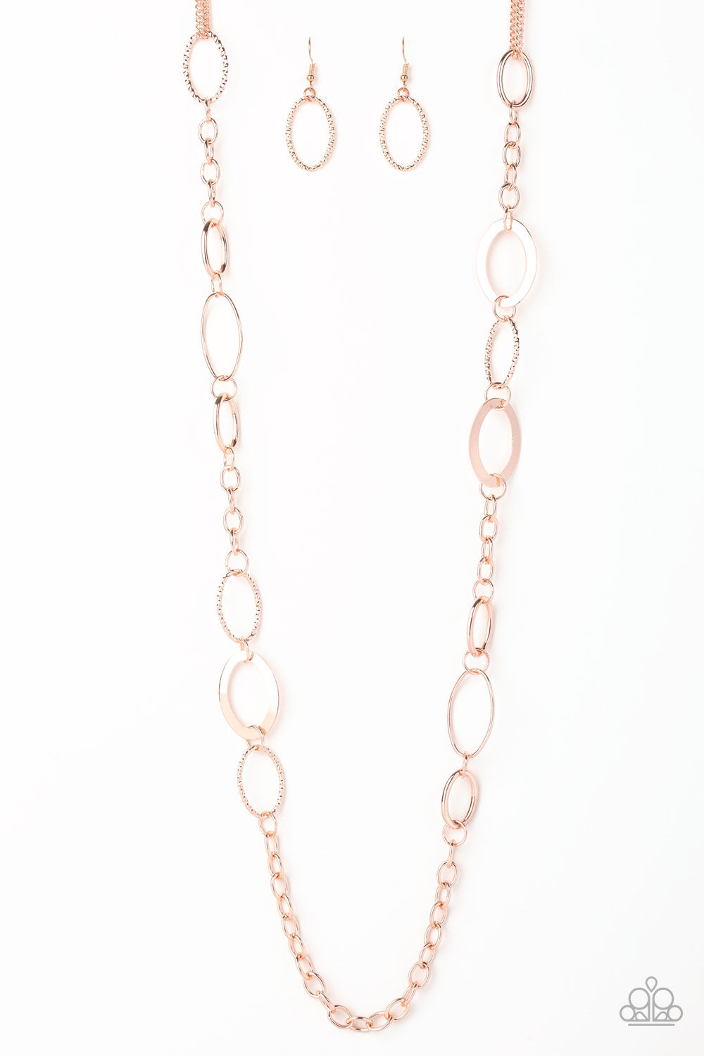 Mismatched rose gold hoops give way to sections of bold rose gold chain, creating a beautiful collision of shiny textures. Features an adjustable clasp closure.