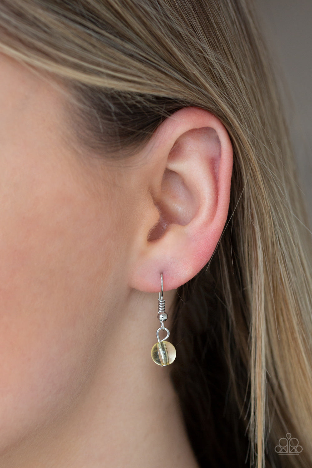 A collection of glassy and opaque yellow crystal-like beads swing from the bottom of interlocking silver chains, creating a fabulous fringe below the collar. Features an adjustable clasp closure.