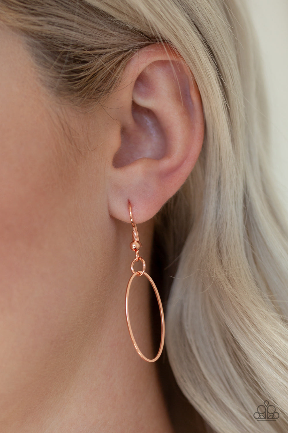 Oval shiny copper frames dangle from a bold shiny copper chain, creating a dizzying fringe below the collar. Features an adjustable clasp closure.