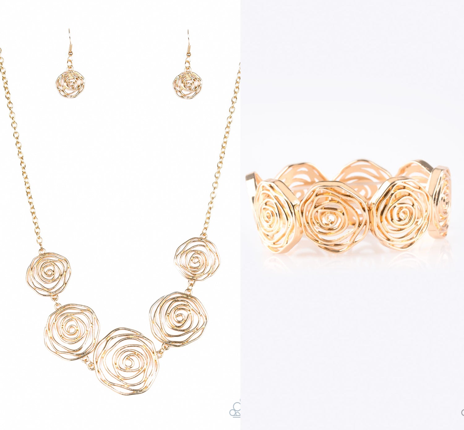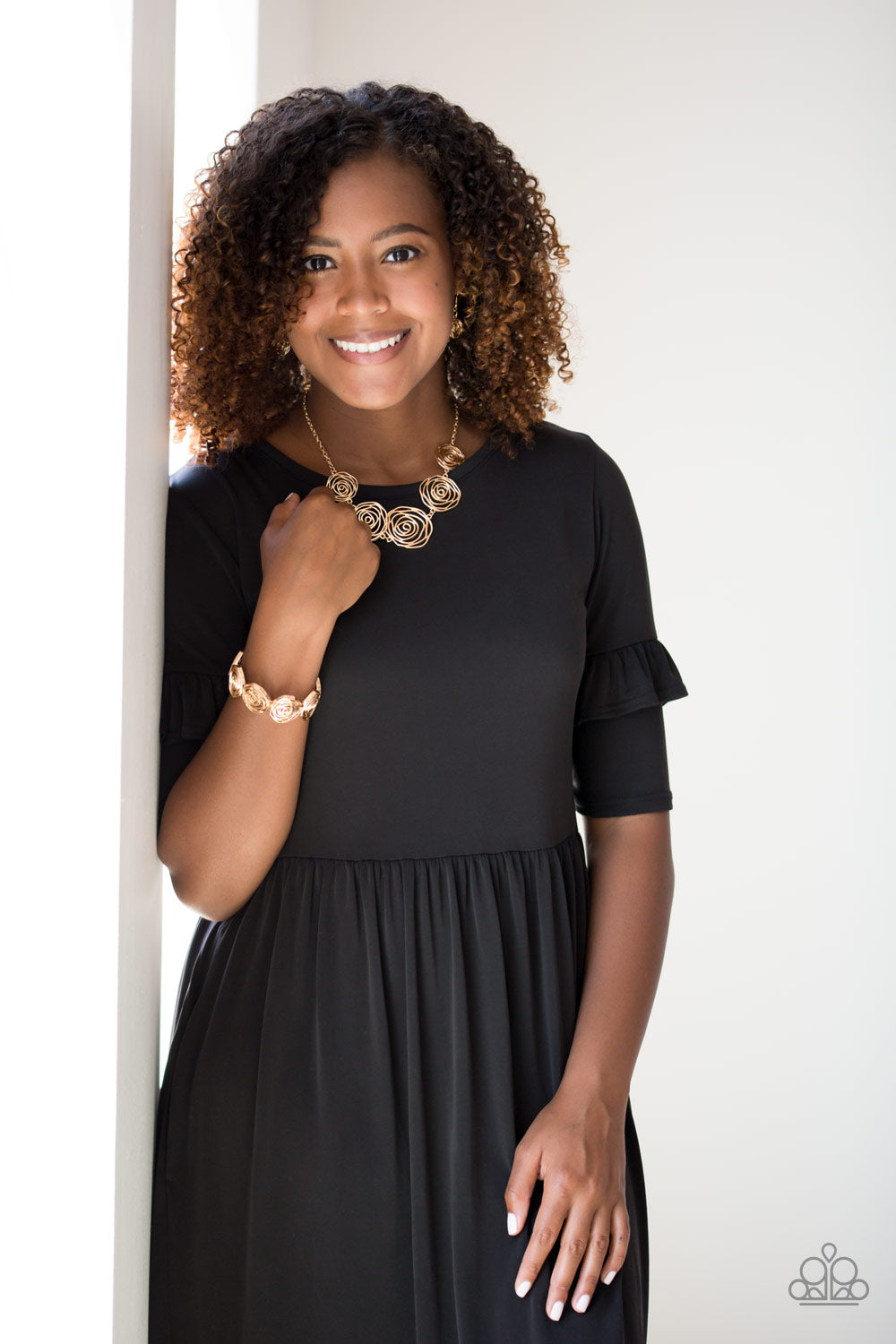 Rosy Rosette - Gold necklace w/ matching bracelet