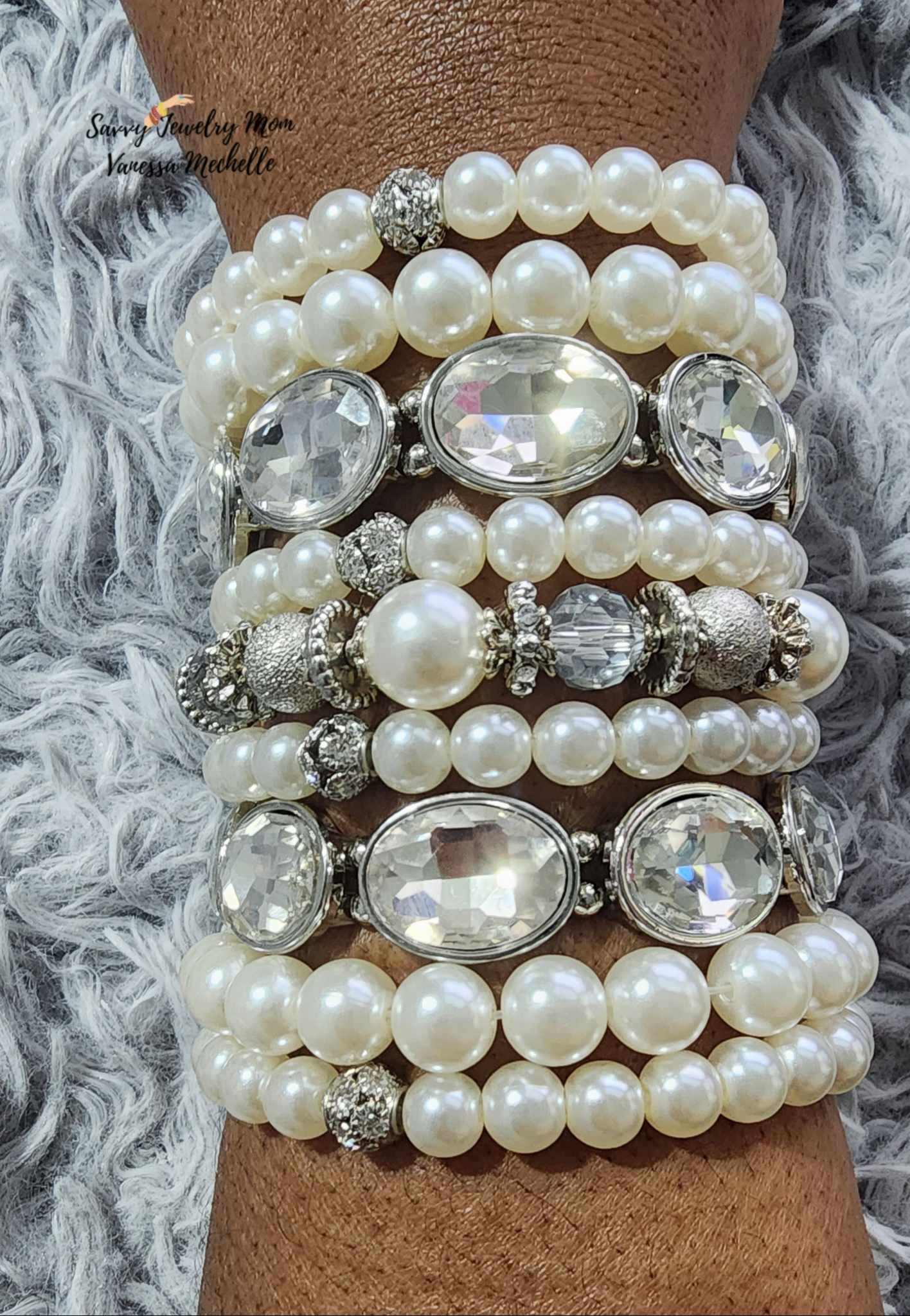 Savvy Wrist Swag #60 (White Pearl, 5 piece bracelet set)