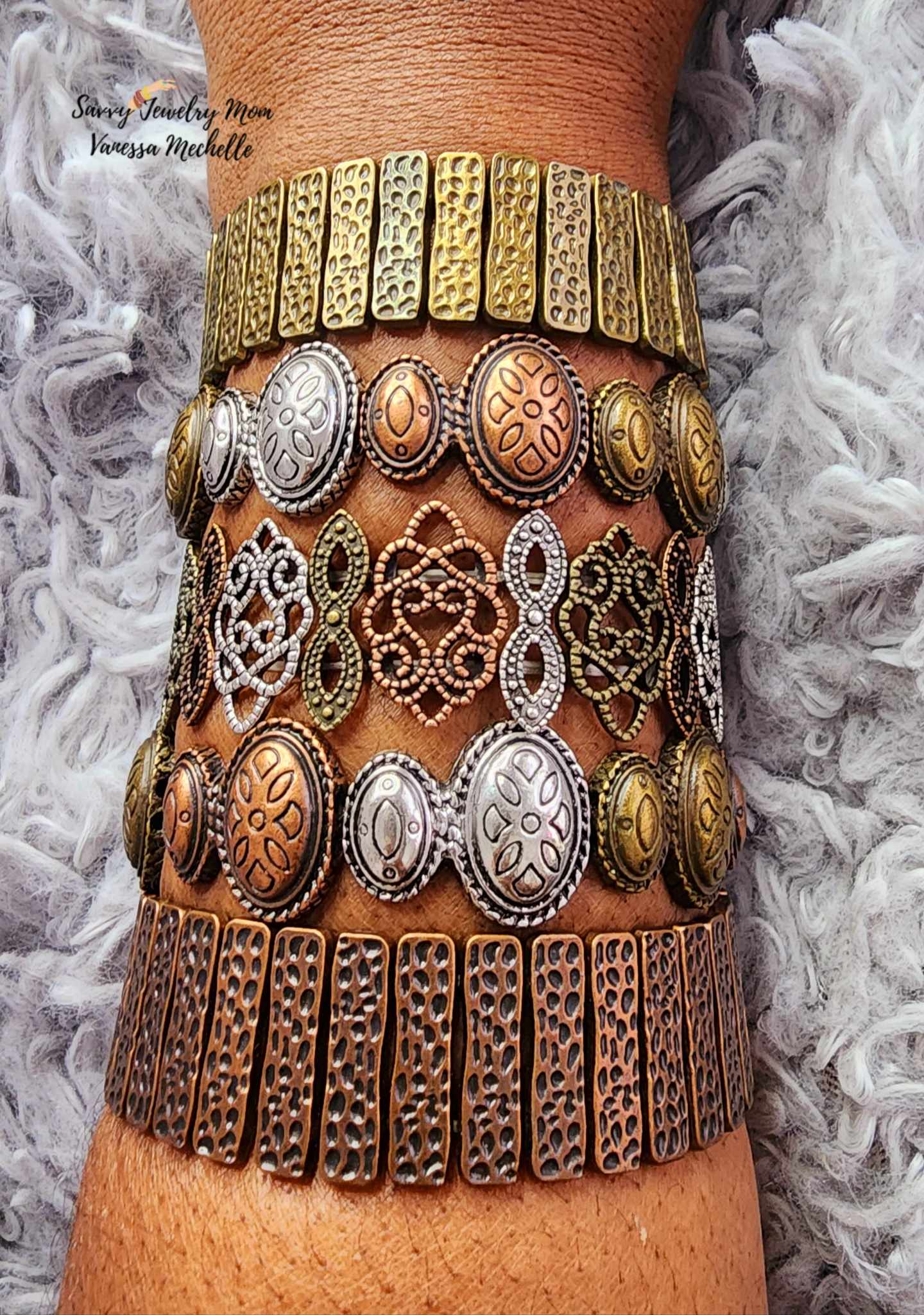 This is a 5 piece Mixed Metal Savvy Wrist Swag