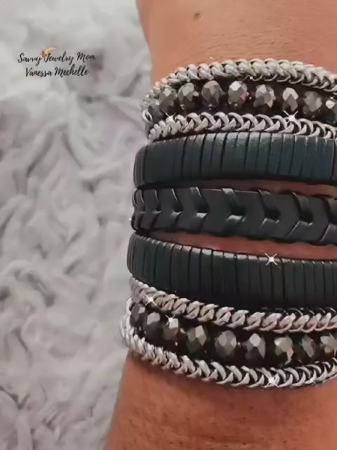 This is a 3 piece Black/Silver Hematite Savvy Wrist Swag
